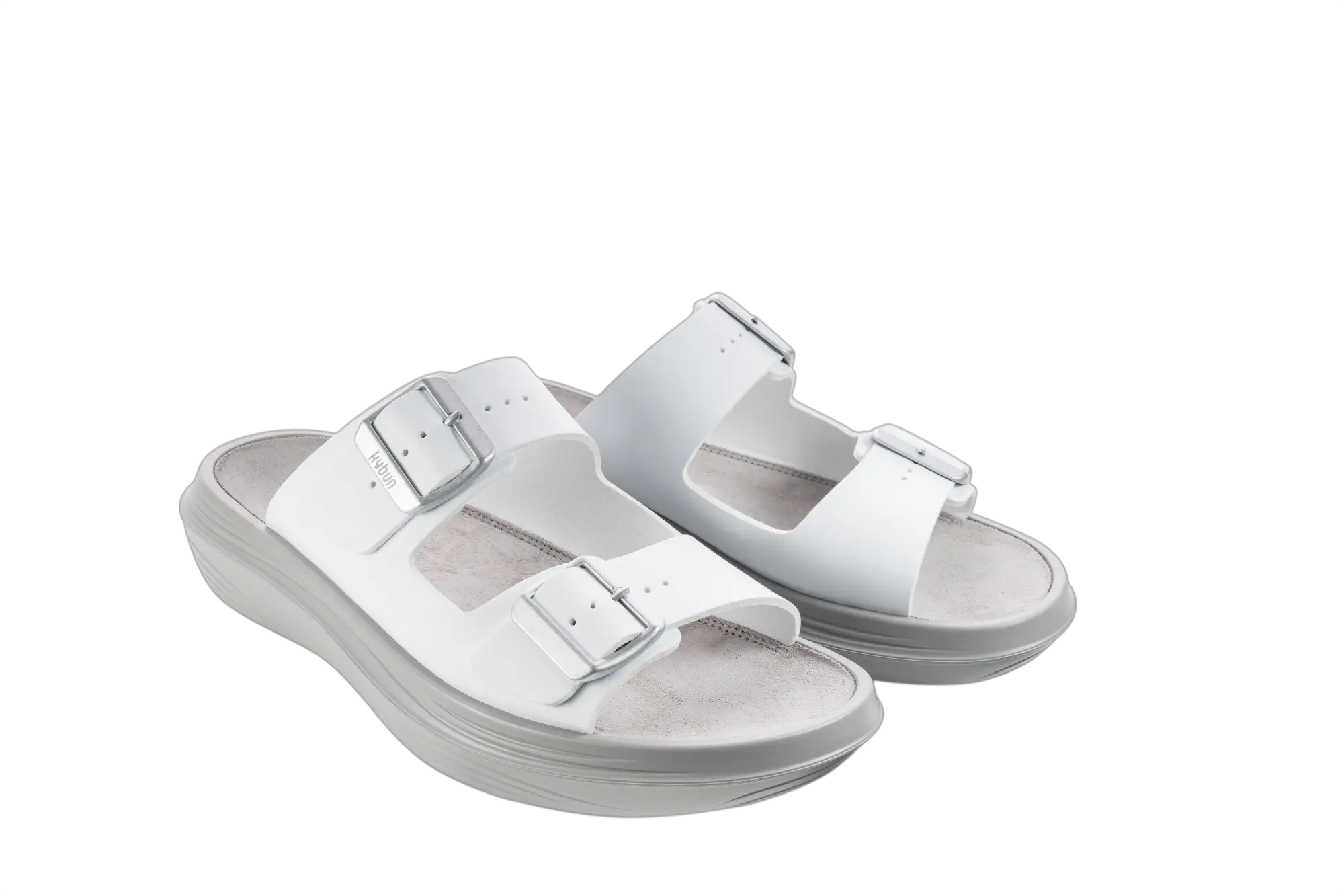 هذا الحذاء الشهير متوفر الآن باللون الأبيض! إن kybun Glarus White هو الحذاء المناسب لكل المناسبات. إنه مثالي للمنزل أو في المكتب. بفضل الإبزيمين، يتكيف الطراز النسائي المريح والعملي بشكل مثالي مع كل ارتفاع في مشط القدم. حذاء الكيبون المسمى Glarus White هو أيضًا الحذاء المثالي للارتداء في المنزل أو في المجال الطبي.