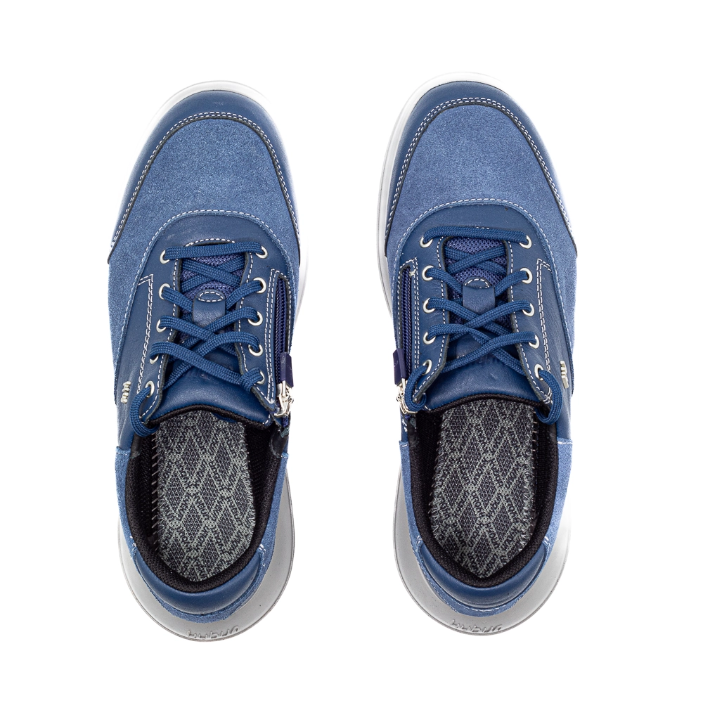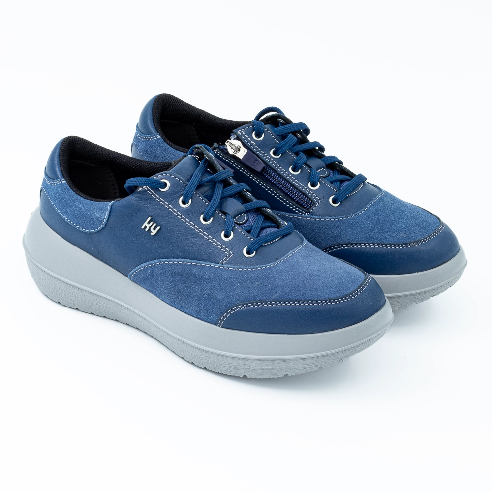 يخطف موديل Aarau Blue النسائي الأضواء بتصميمه المتواضع بمجموعة من التشطيبات الجلدية. بفضل السحاب الجانبي في الأعلى، من السهل ارتداء هذا الحذاء وخلعه، دون الحاجة إلى فك الأربطة في كل مرة. تمنح المادة المصنوعة من الجلد السويدي طراز Aarau Blue مظهرًا وملمسًا ناعمًا، ويضمن لك نعل Strato تجربة تأثير نابض مرن أثناء المشي، حتى على الأرضيات الصلبة والمسطحة.
