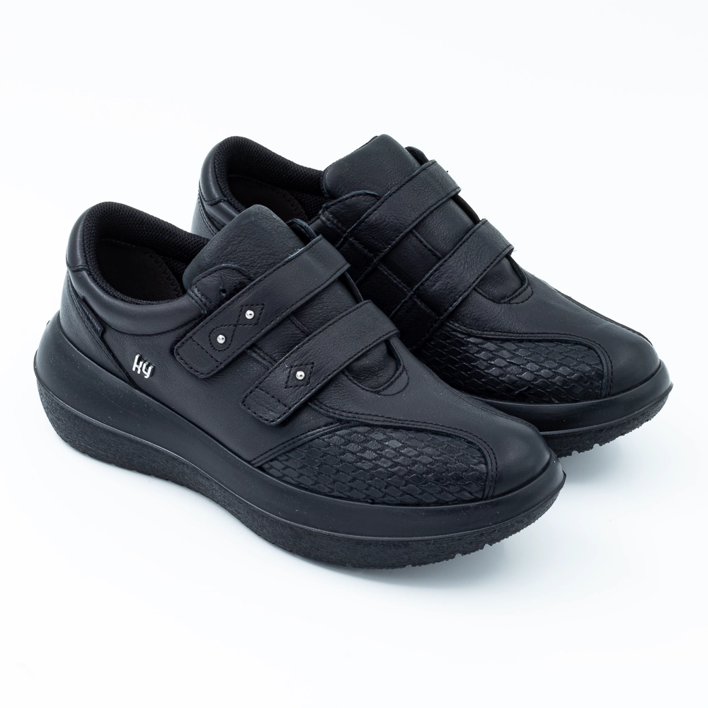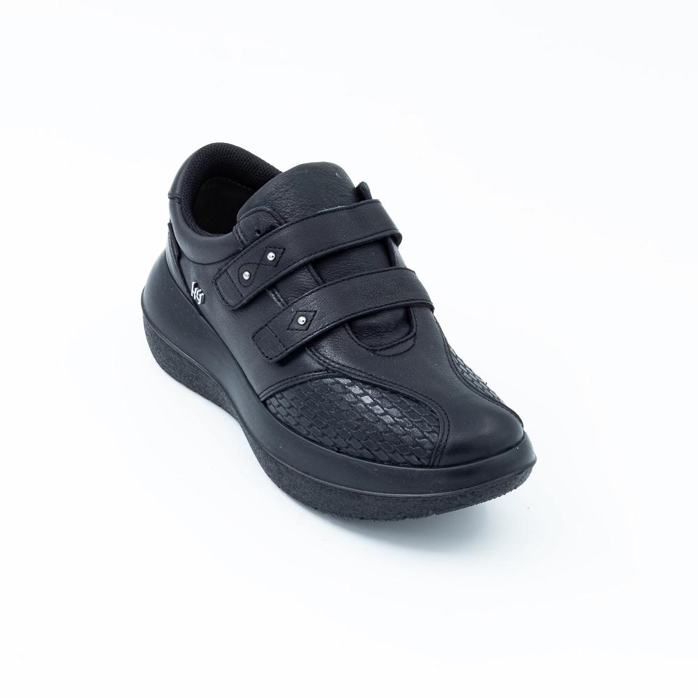 لا يوجد شيء مثل مريحة وأنيقة؟ إذًا لم يسبق لك أن رأيت أسلوب Leuk التقليدي والمرح الخاص بنا. إنه مناسب تمامًا للنساء المهتمات بالصحة اللاتي يحببن التفاصيل المرحة. تضيف البلورات المتلألئة بعض السحر الخفيف إلى هذا التصميم البسيط. تعد الأجزاء الداخلية المصنوعة من مادة قابلة للتمدد بشكل خاص للقدمين بمزيد من الراحة. إن kybun Leuk 20 Black هو خليفة Leuk Black ويأتي على نعل Strato.