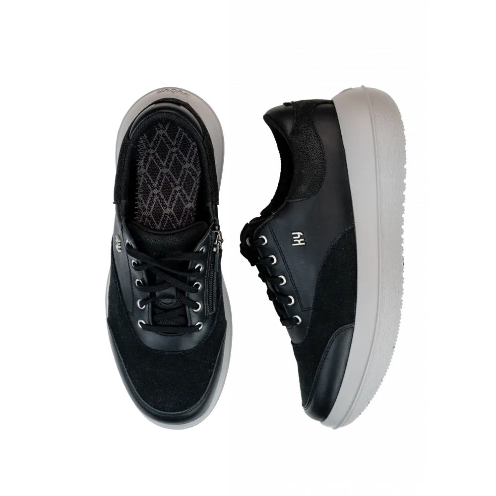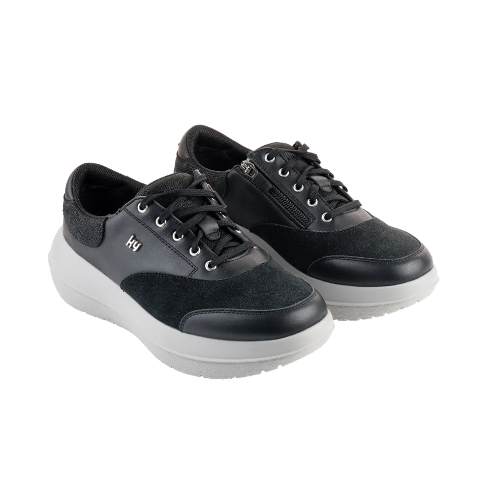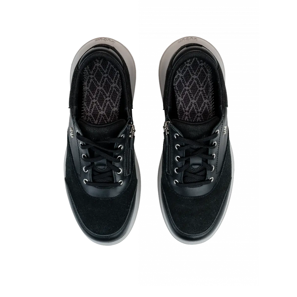حذاء عصري أنيق برباط وسحّاب جانبي لارتداء سهل، مصنوع من مزيج فاخر من الجلد الطبيعي والشمواه الناعم. مزوّد بنعل هوائي سويسري عالي الارتداد يمنح راحة فائقة ويخفف الضغط عن المفاصل والظهر مع كل خطوة.