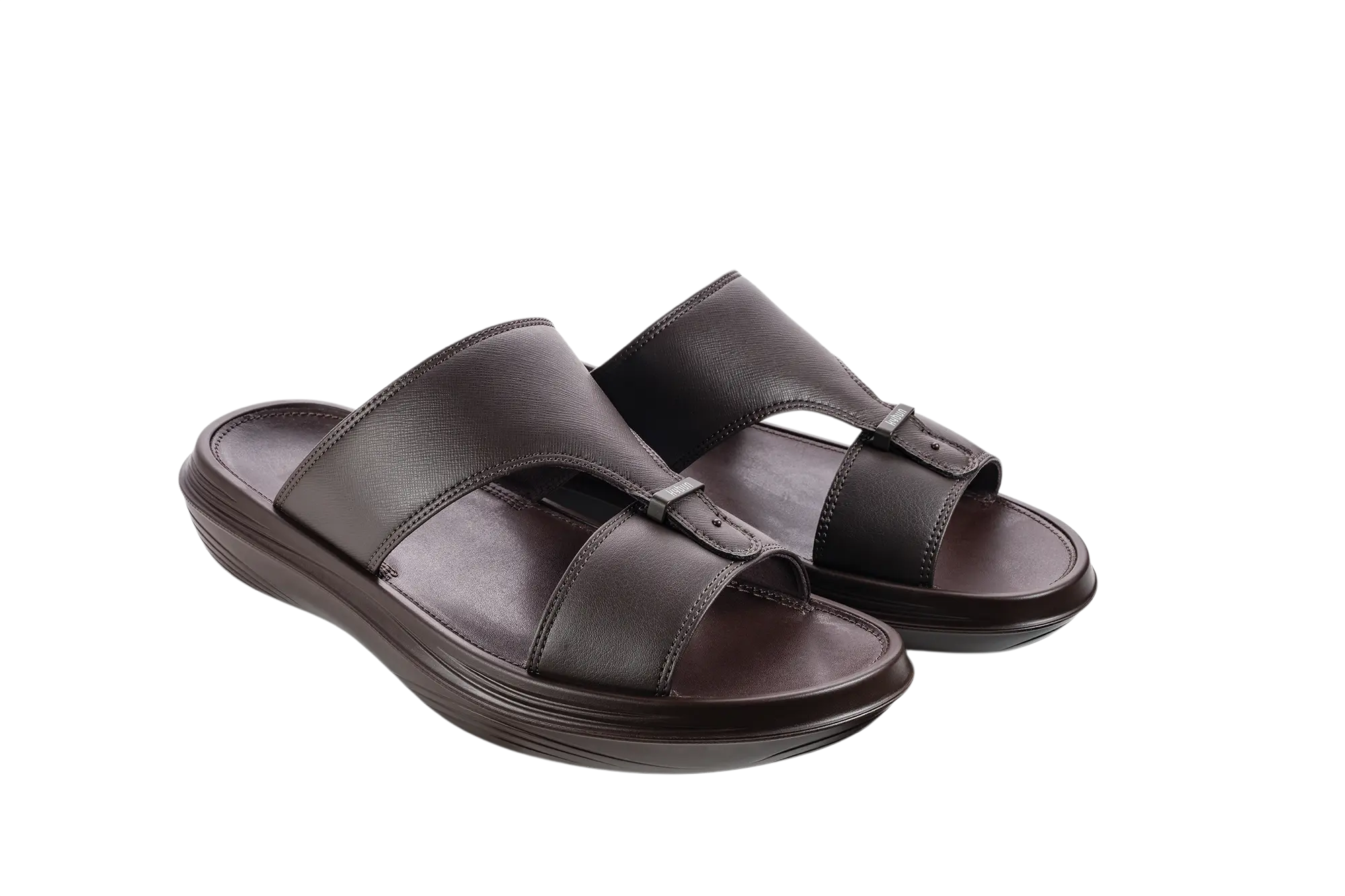 نعل أنيق وعصري بتصميم انسيابي من جلد سافيانو المنقوش وجلد ناعم فاخر، مزين بحلقة معدنية راقية. مزود بنعل هوائي سويسري يمنح راحة فائقة ويخفف الضغط على المفاصل والظهر مع كل خطوة.