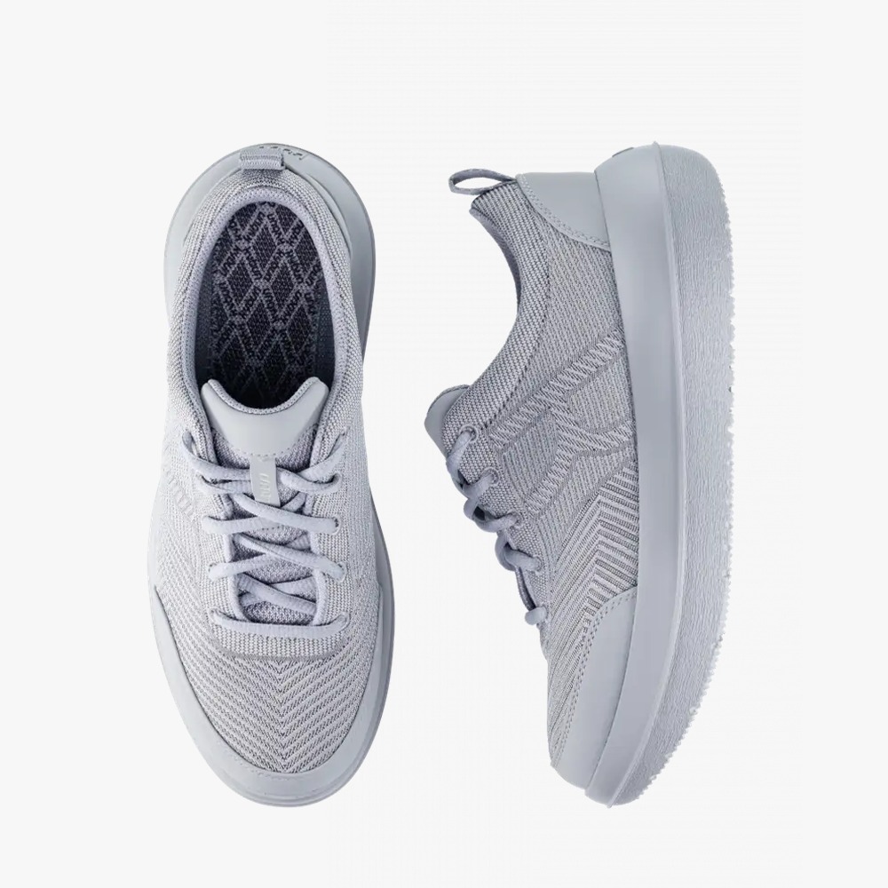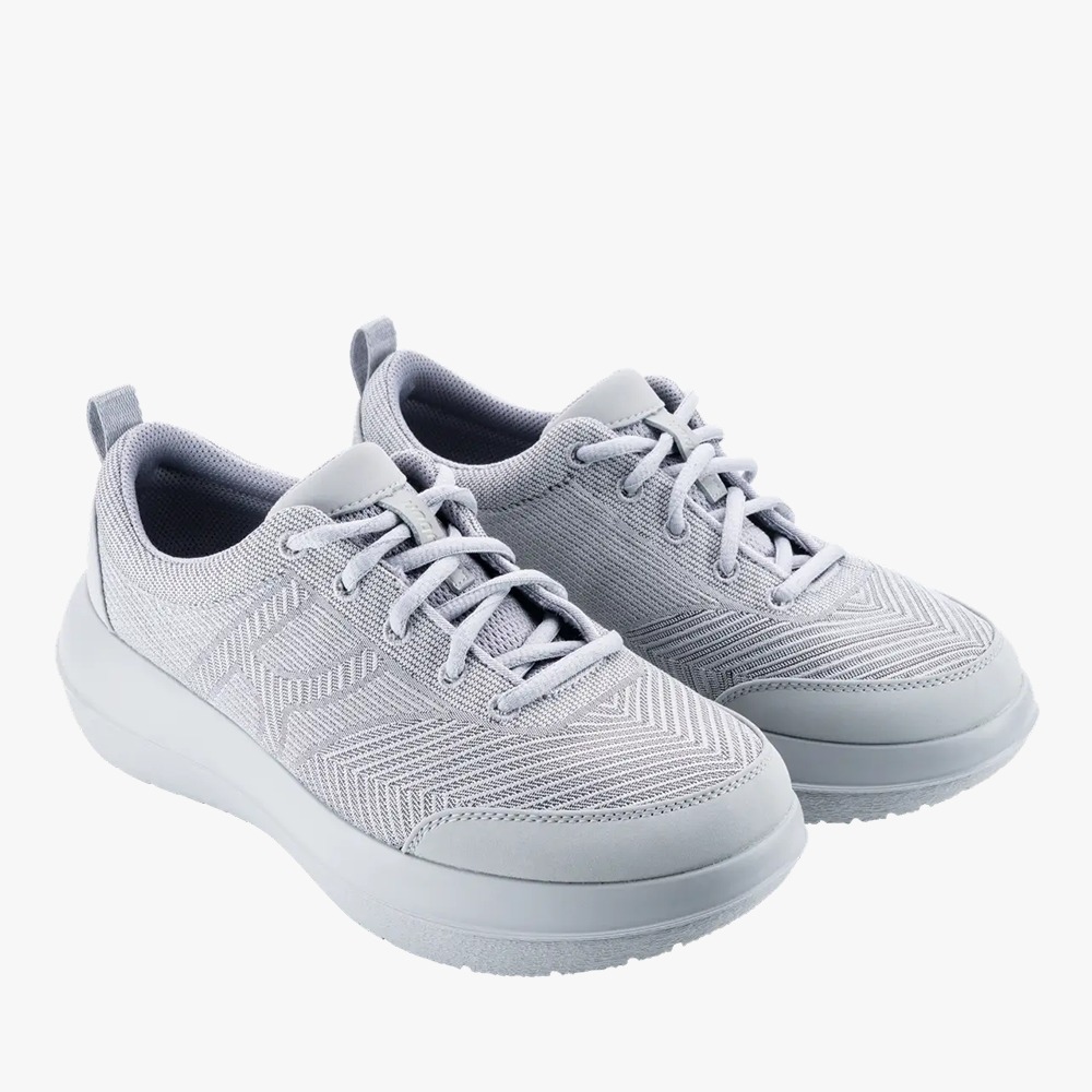 حذاء أنيق وبسيط بأربطة، مصنوع من قماش الجاكارد بتهوية مثالية. مزود بنعل هوائي سويسري يمنح راحة استثنائية، ويخفف الضغط على المفاصل والظهر مع كل خطوة.